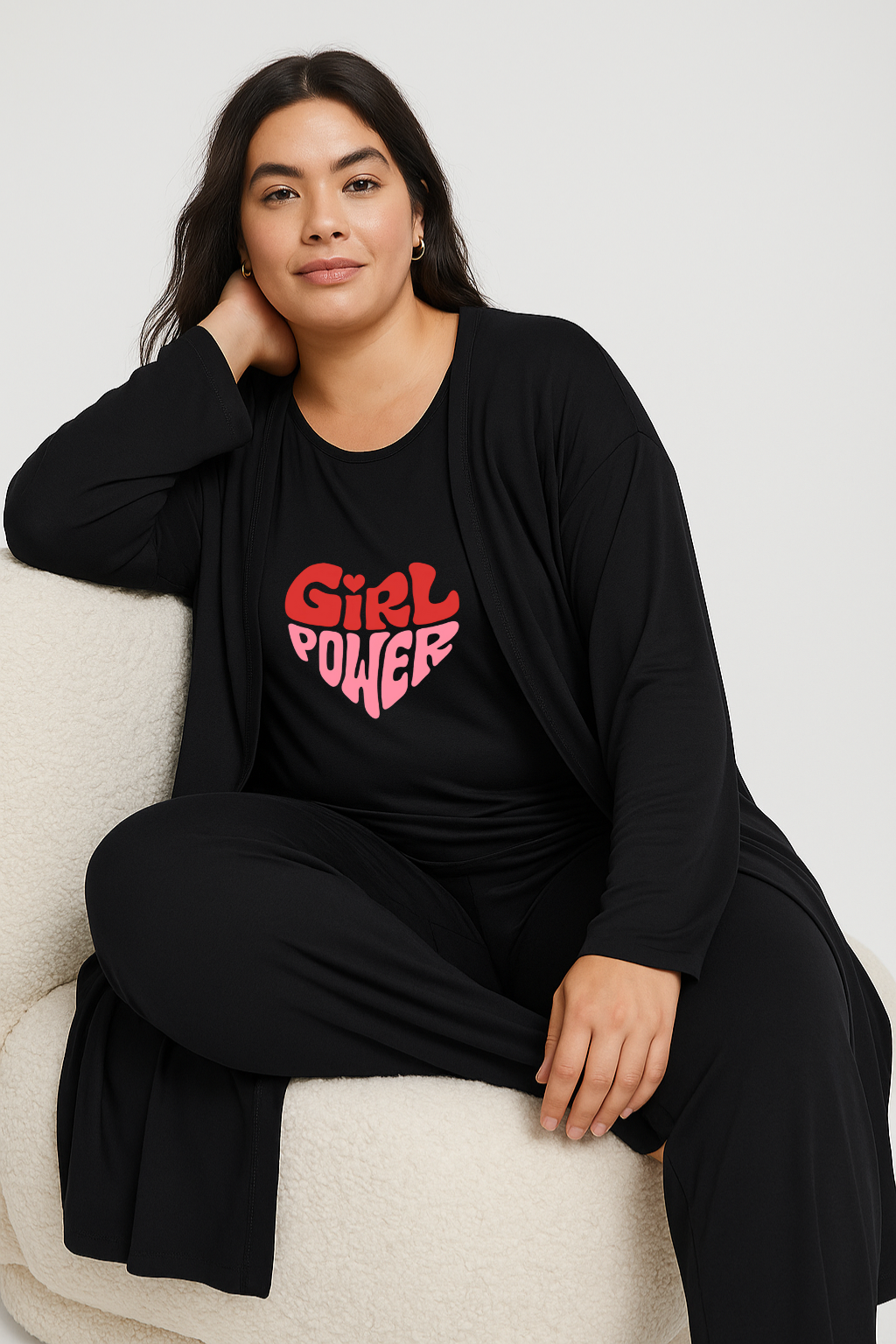 Women’s 3 Piece Nightwear Lounge Set with Girl Power Print | Plus Size Loungewear