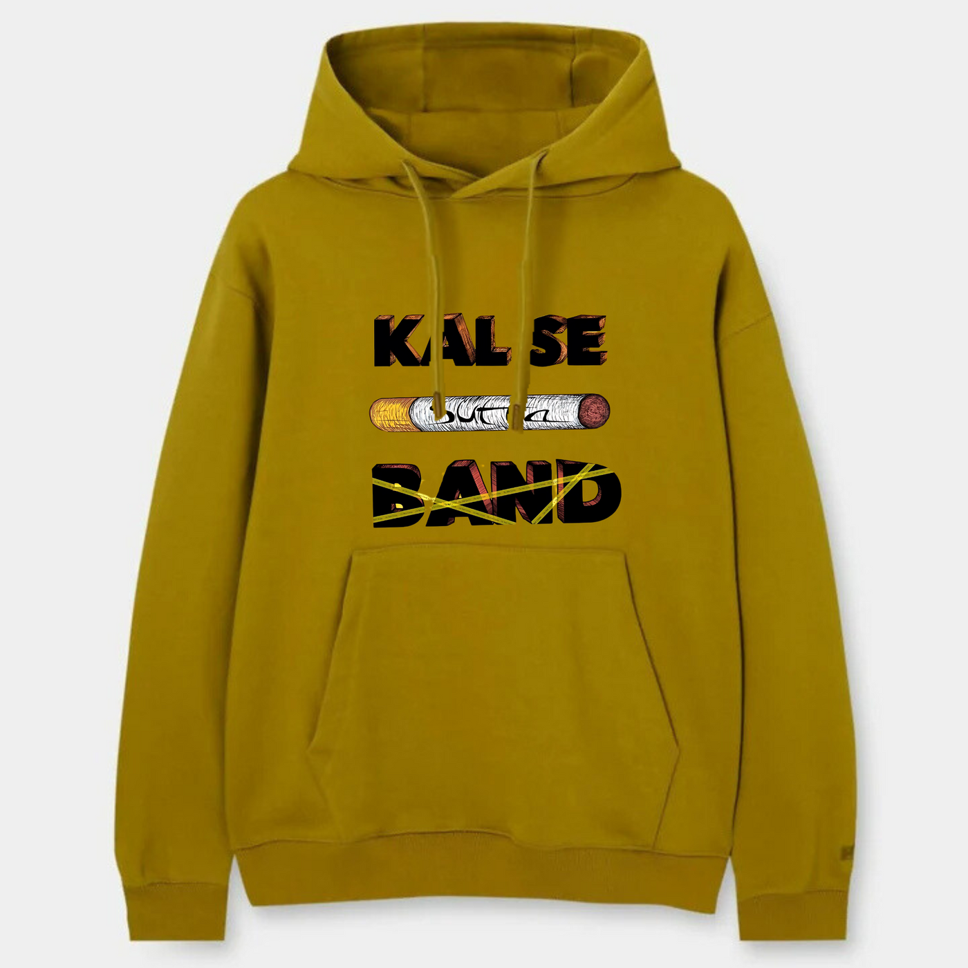Elevate your winter wardrobe with our kal se sutta band Hoodie! This bold and adventurous hoodie features a printed kal se sutta band on a sleek black background, perfect for making a statement. Stay warm and stylish with the added benefit of adjustable strings. Take a risk and stand out from the crowd in this must-have winter essential.