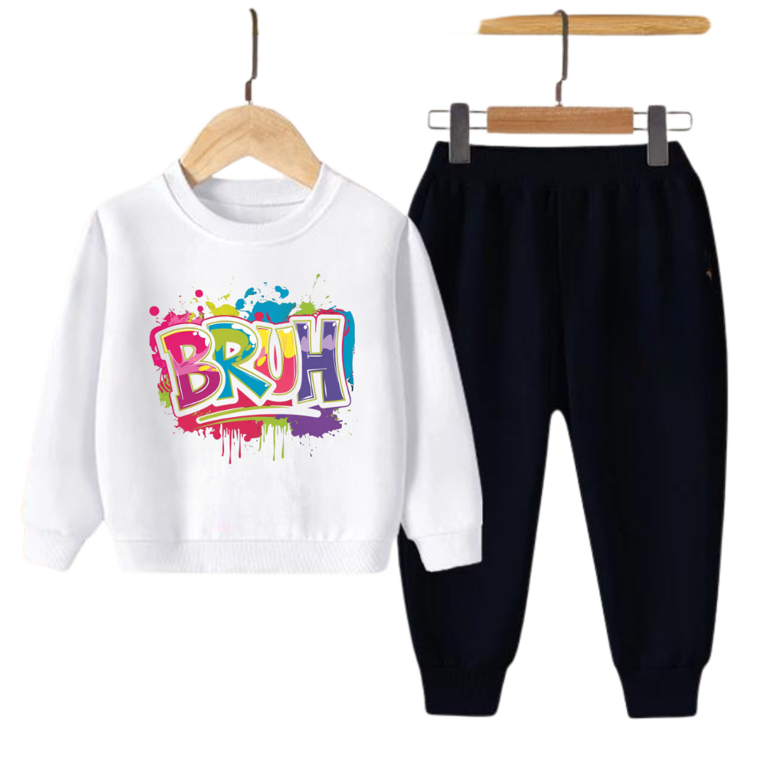 Made from soft fleece cotton, this set keeps your child warm, cozy, and stylish throughout the season. The graffiti “BRUH” design adds a fun, expressive touch — perfect for school, playdates, or casual outings.
