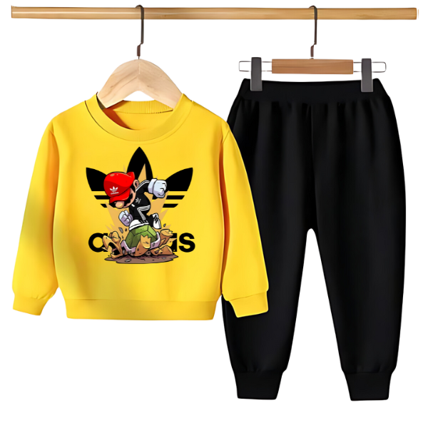 This Kids Sweatshirt & Pant is perfect for your little one's winter wardrobe! Crafted from breathable knitted Fleece Fabric, this two-piece set features a "Sports Logo" print on the front of the sweatshirt, and the trousers feature a print on the left leg. Soft and stretchy, this outfit is perfect for everyday wear, keeping your little one warm and comfortable all winter long.