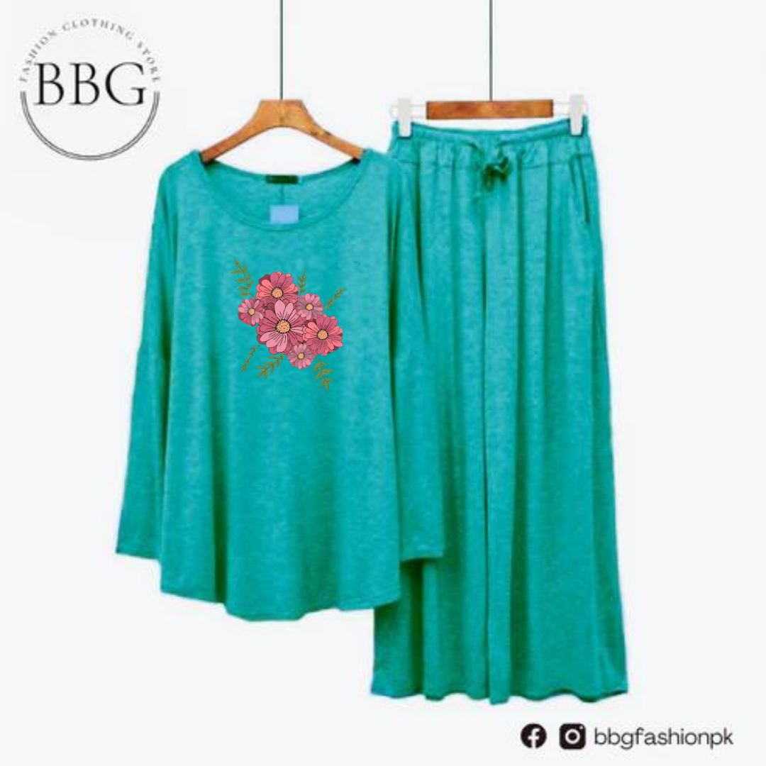 Black Flower Design Women Loungewear ARTICLE #52 - Medium / Soft Jersey / Black