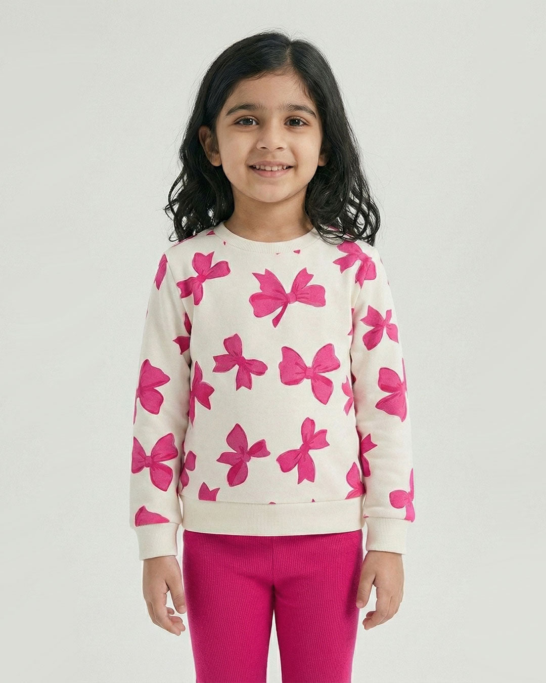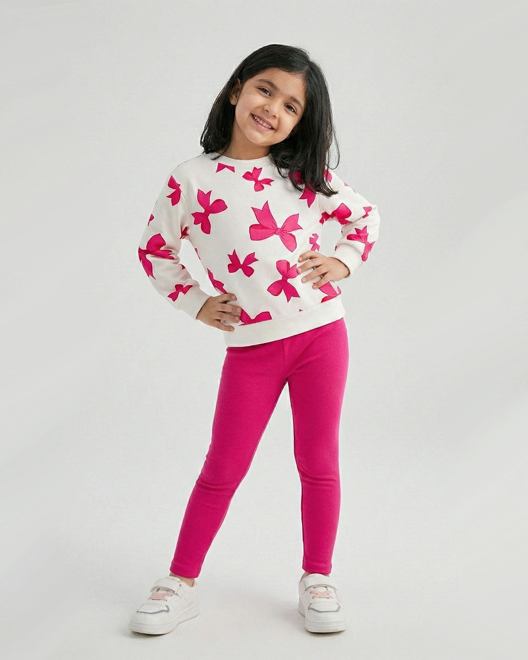 Girls Pink Bow Print Sweatshirt & Leggings Set