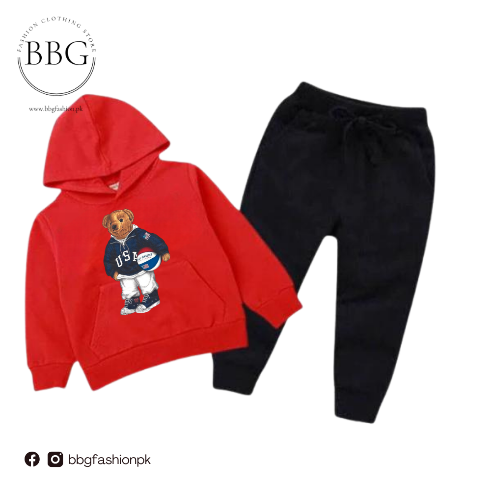 Football Bear Printed Kids Hoodie Set - 3 - 4 Years / Silver